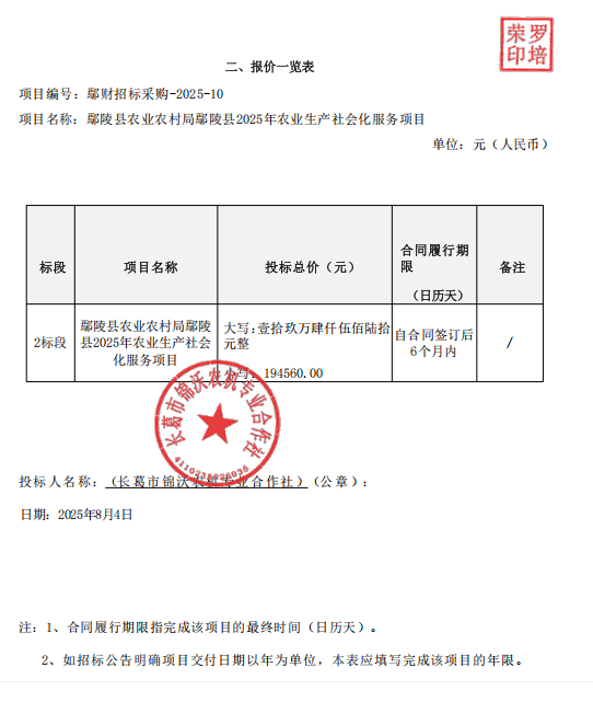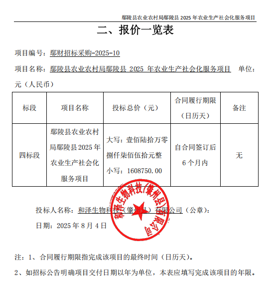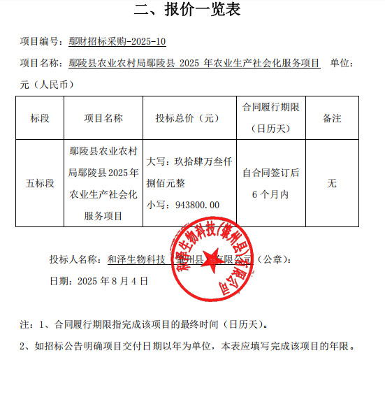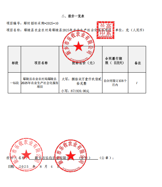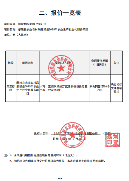 Y2025FZ035鄢陵县农业农村局鄢陵县2025年农业社会化服务项目(不见面开标)(评定分离)-中标公告
