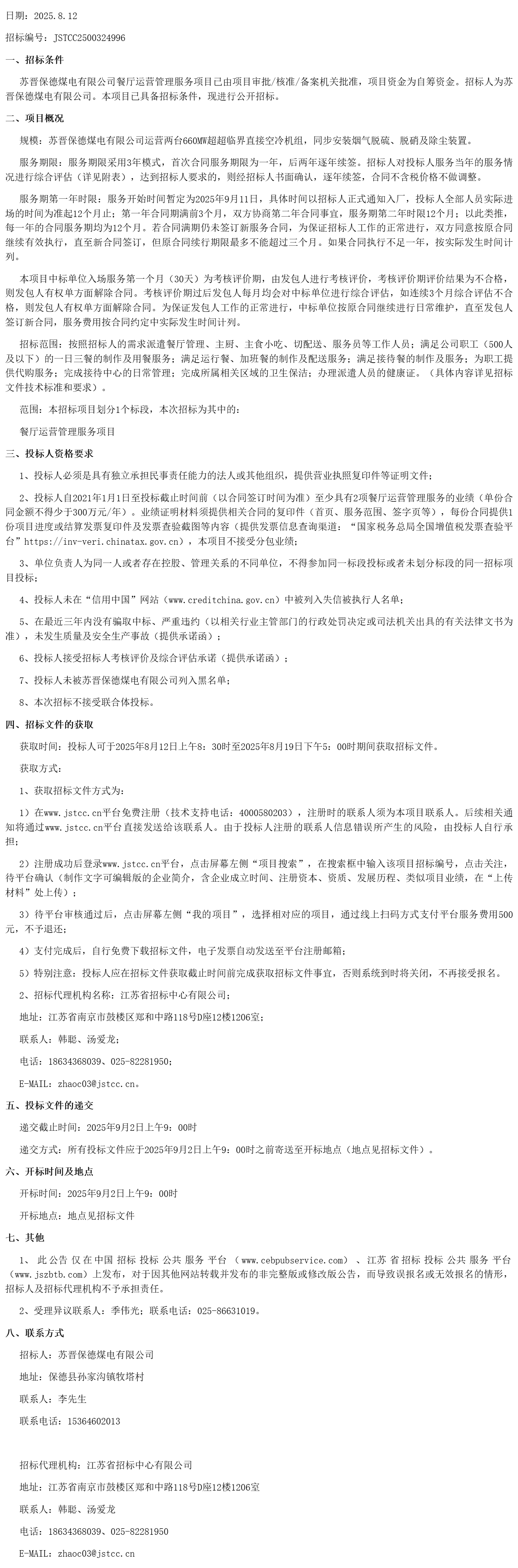 苏晋保德煤电有限公司餐厅运营管理服务项目招标公告(***************)