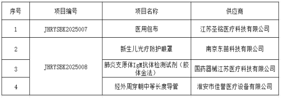 江苏省淮安市金湖县人民医院医用包布等院内比选结果公告