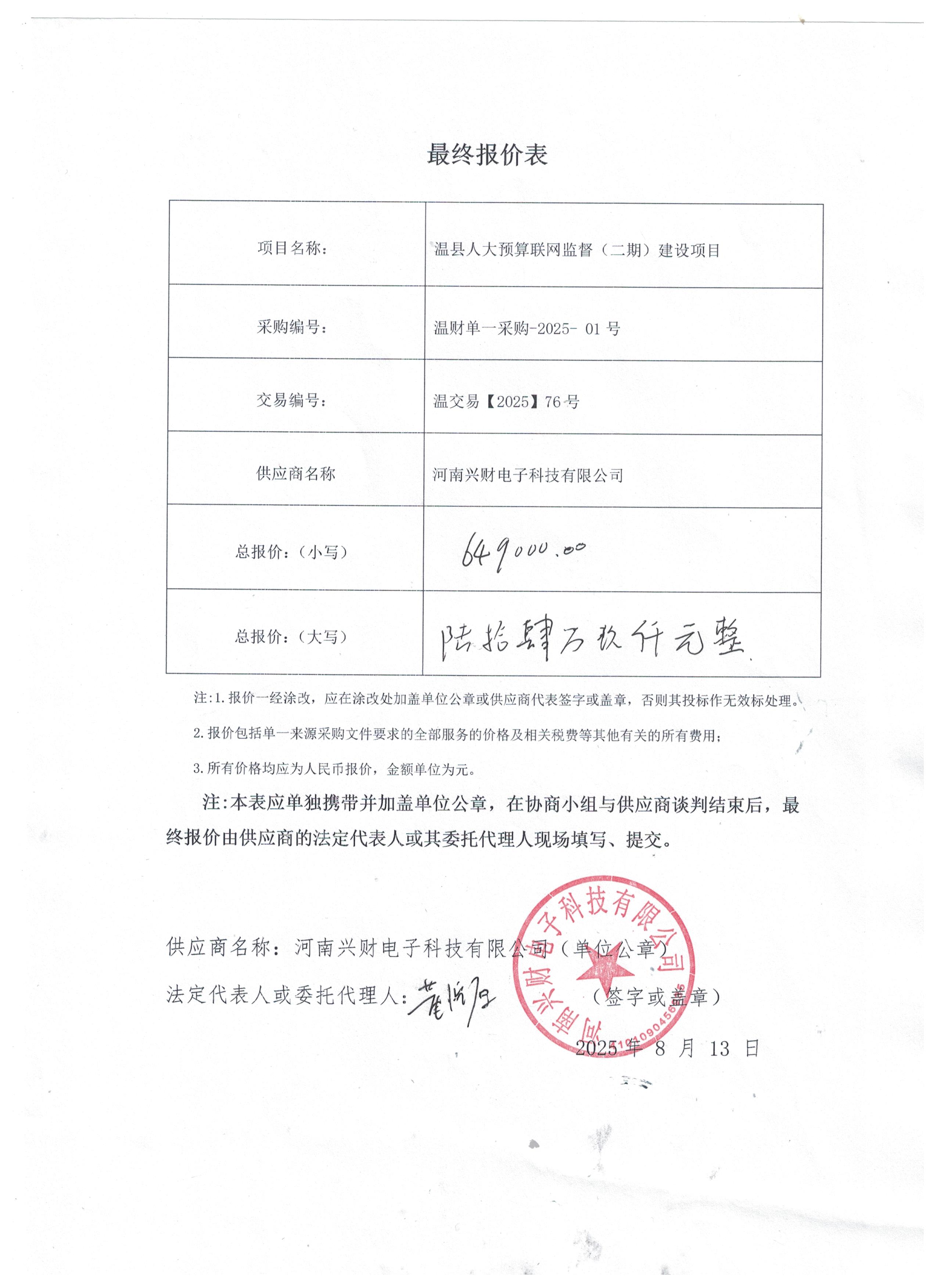 温县财政局温县人大预算联网监督(二期)建设项目*成交公告