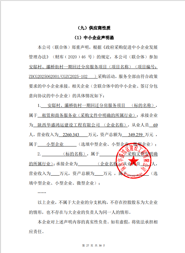 二、项目名称:安邸村、灞桥街村一期回迁分房服务项目