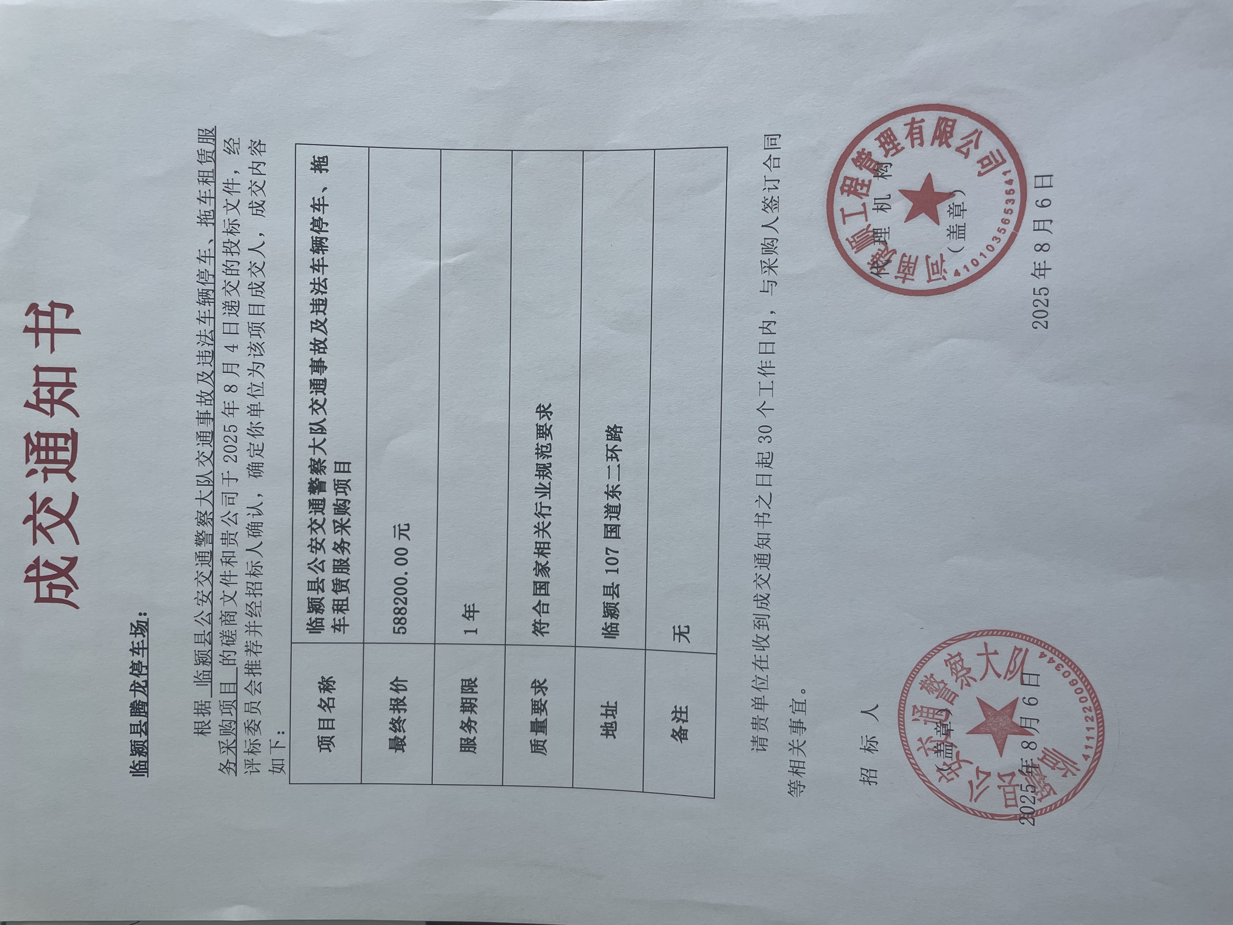 | 二、合同名称:临颍县公安交通警察大队交通事故及违法车辆停车、拖车租赁服务采购项目 | ||||||||||||