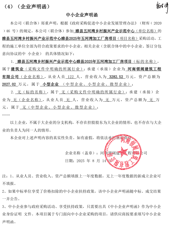 睢县五河湾乡村振兴产业示范中心睢县2025年五河湾加工厂房项目-成交公告