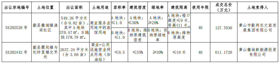 歙县国有建设用地使用权挂牌成交结果公示(*************)