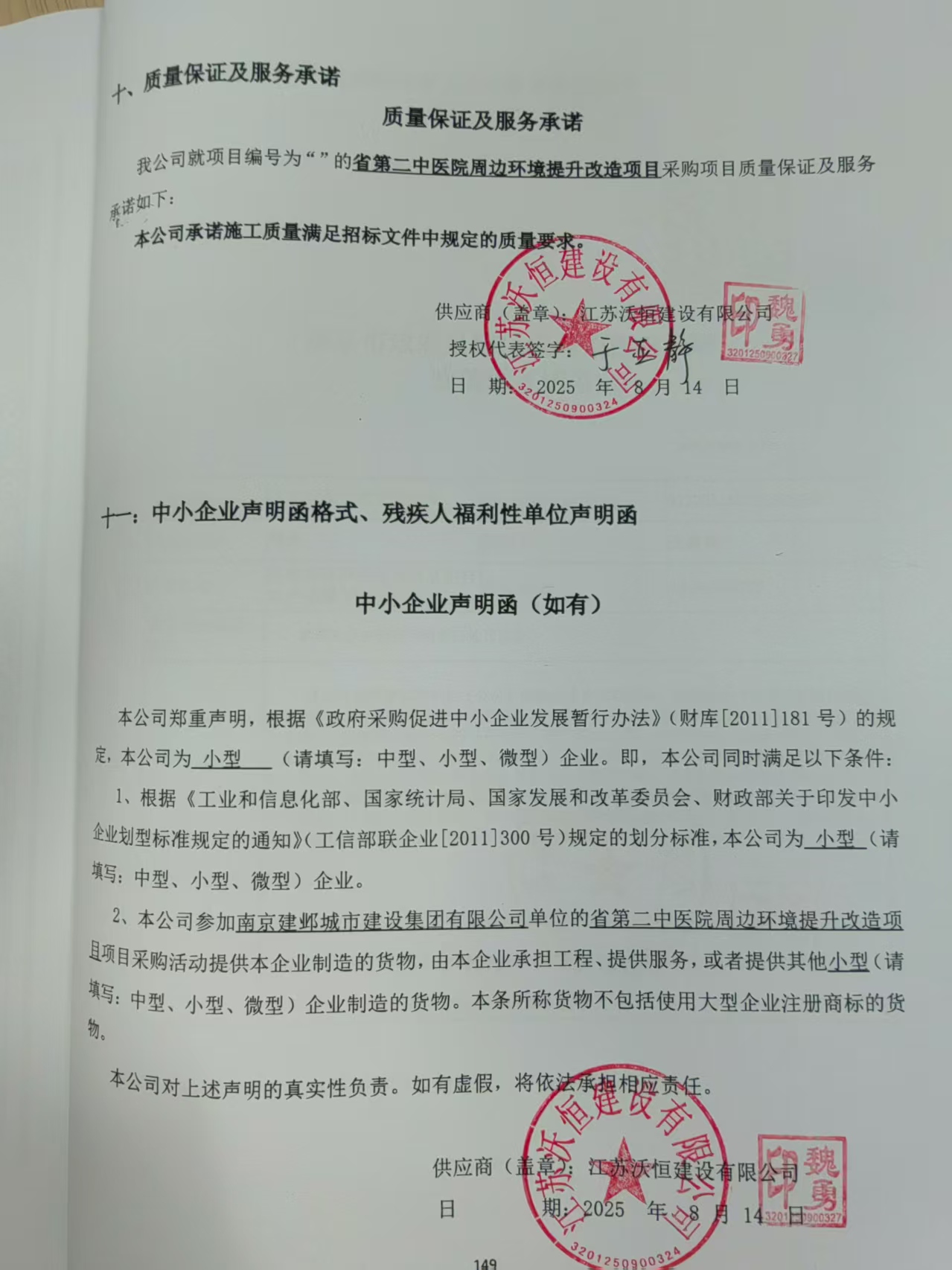 供应商名称:江苏沃恒建设有限公司