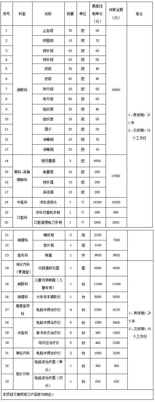 *.项目名称:“大玉医”城市医疗集团(玉溪市第三人民医院)零星设备、器械采购项目(*包)(二次)