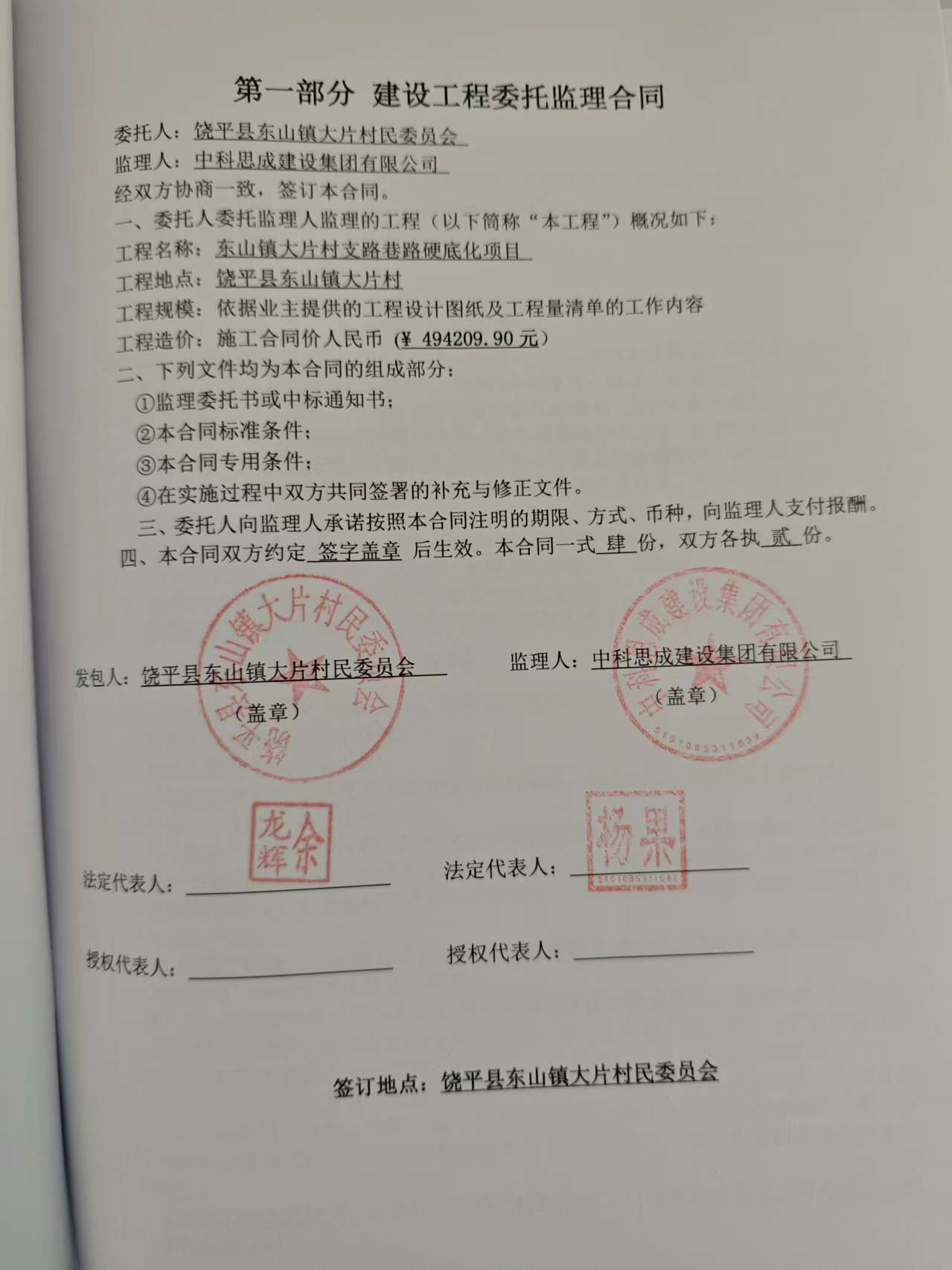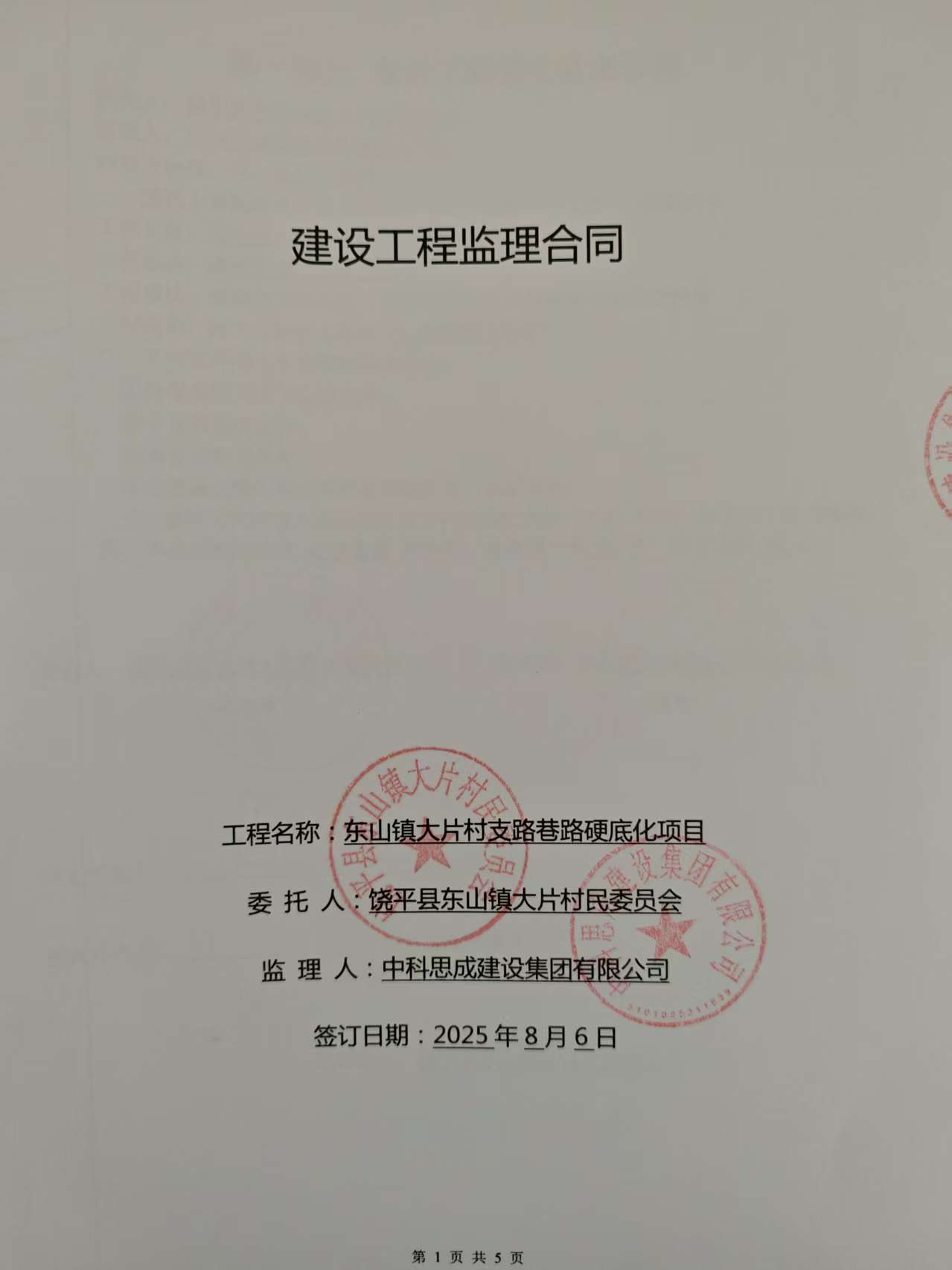 东山镇大片村支路巷路硬底化项目建设工程监理合同公开