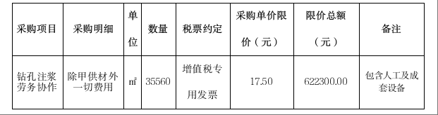 (*)供应商提供自有钻孔和注浆设备各一台(提供购买合同及发票复印件加盖公章)。