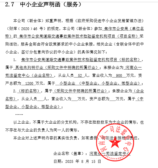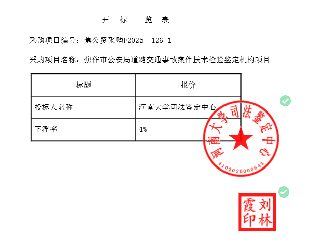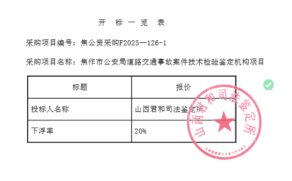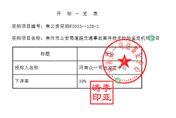 焦作市公安局道路交通事故案件技术检验鉴定机构项目中标结果公告