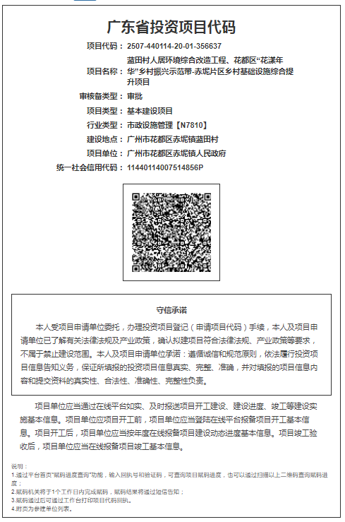 | 投资项目名称 | 蓝田村人居环境综合改造工程、花都区“花漾年华”乡村振兴示范带*赤坭片区乡村基础设施综合提升项目 | ||