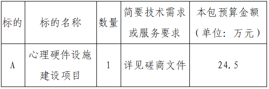 心理硬件设施建设项目采购项目的潜在供应商应在烟台市高新区科技大道**号创业大厦西塔裙楼***获取采购文件,并于********** **:**:**(北京时间)前提交响应文件。
