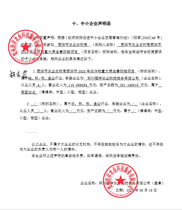 荥阳市农业农村局荥阳市2025年农作物重大病虫害防控项目-成交公告