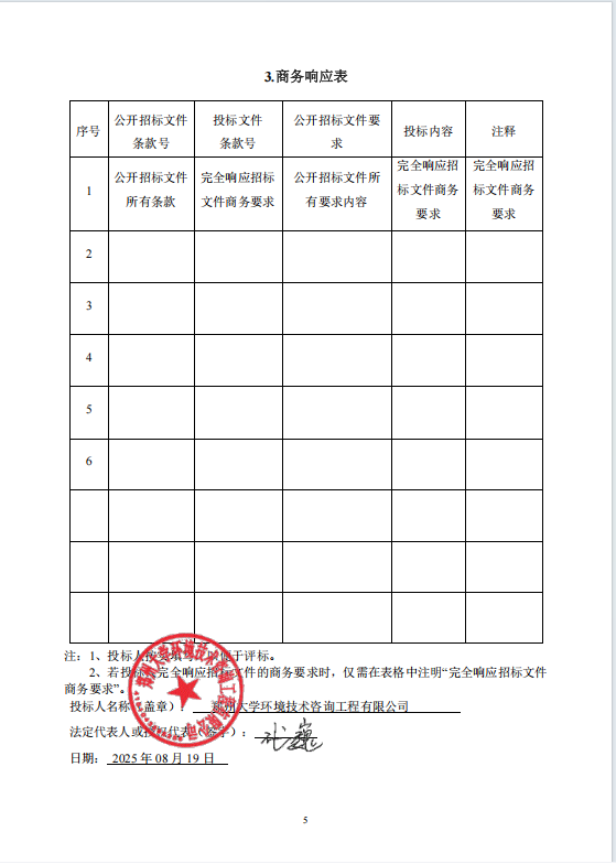 | 本项目公告发布之日同时向中标人发出中标通知书;以邮寄、电子邮件等方式对未通过资格审查的投标人,告知其未通过的原因;参与评审但未中标的,告知其本人的评审得分与排序。 *.投标人排序及得分情况:排序*:郑州大学环境技术咨询工程有限公司,最终得分:**.**分;排序*:河南可人科技有限公司,最终得分:**.**分;排序*:苏州清咨威特环保科技有限公司,最终得分:**.**分;排序*:河南省科悦环境技术有限公司,最终得分:**.**分;排序*:河南蓝天环境工程有限公司,最终得分:**.**分。 *.各有关当事人对中标结果有异议的,可以在中标公告发布之日起七个工作日内,以书面形式向招标人提出质疑,并以供应商提交的质疑函接受确认日期作为受理时间,逾期未提交的不再受理。 | |||||||||||||||||||||||||||||||