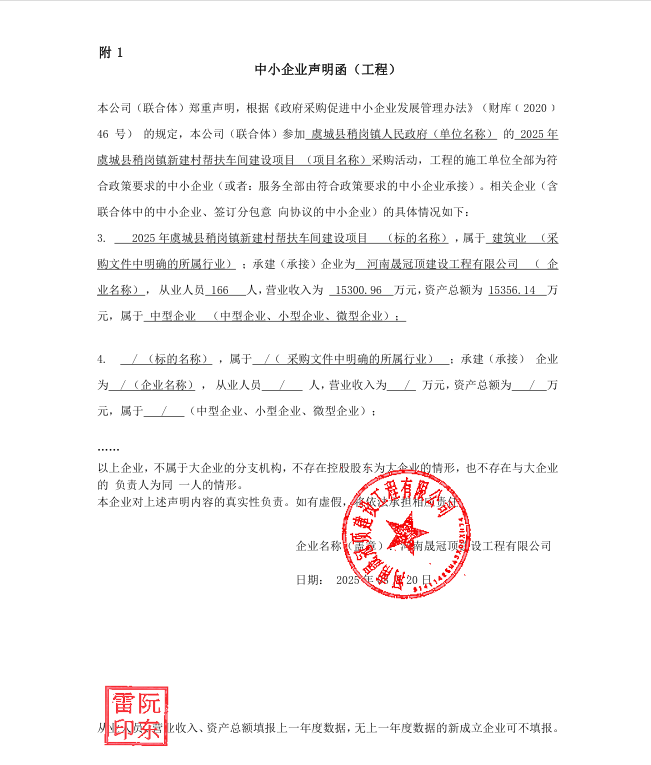 虞城县稍岗镇人民政府2025年虞城县稍岗镇新建村帮扶车间建设项目结果公告