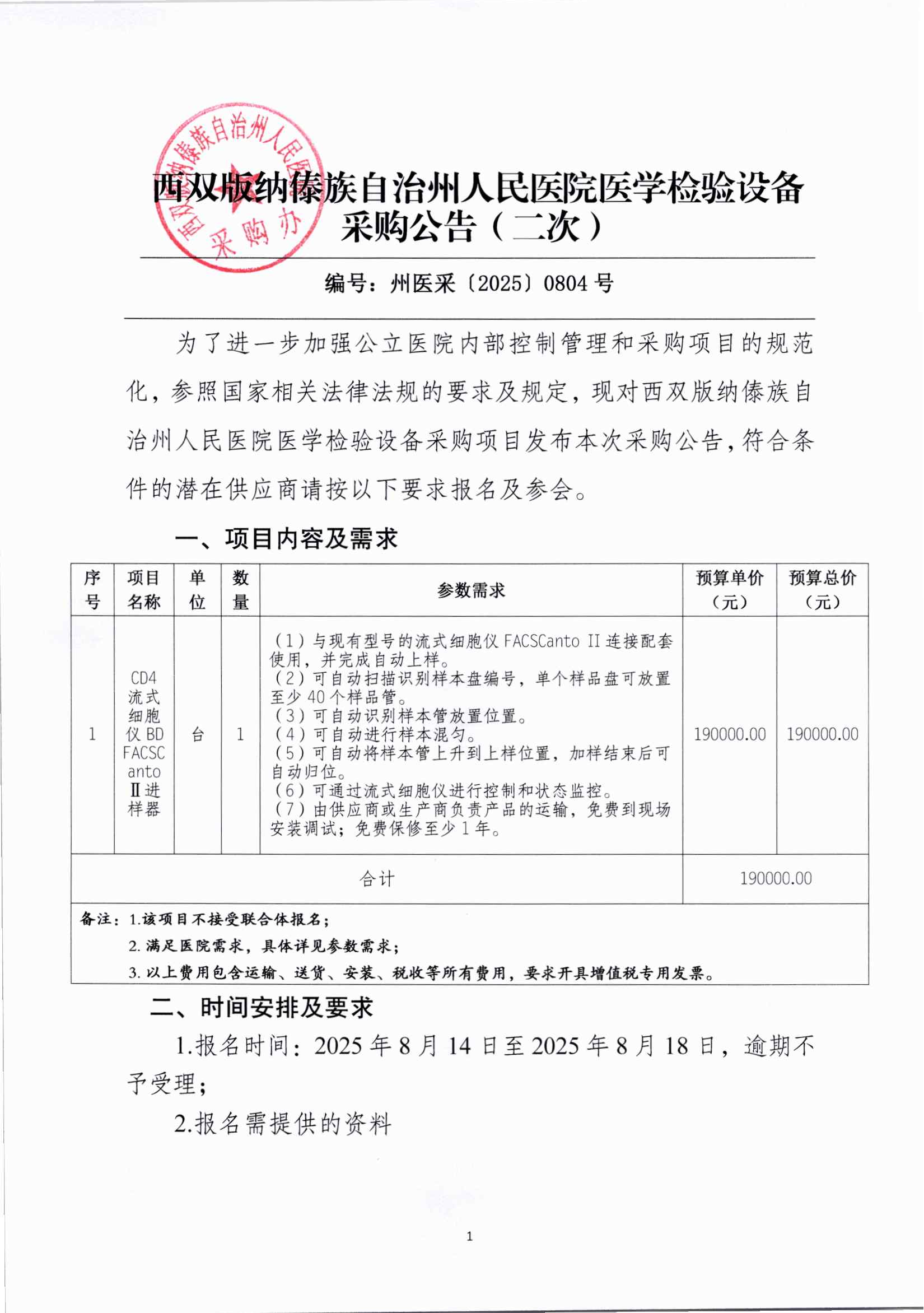 西双版纳傣族自治州人民医院医学检验设备采购公告(二次)