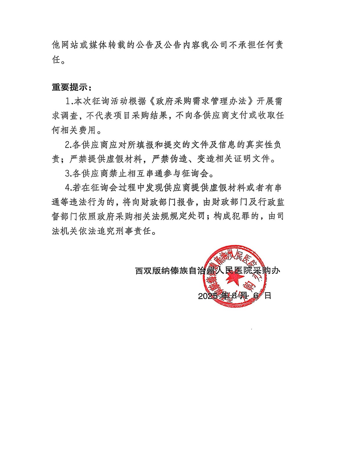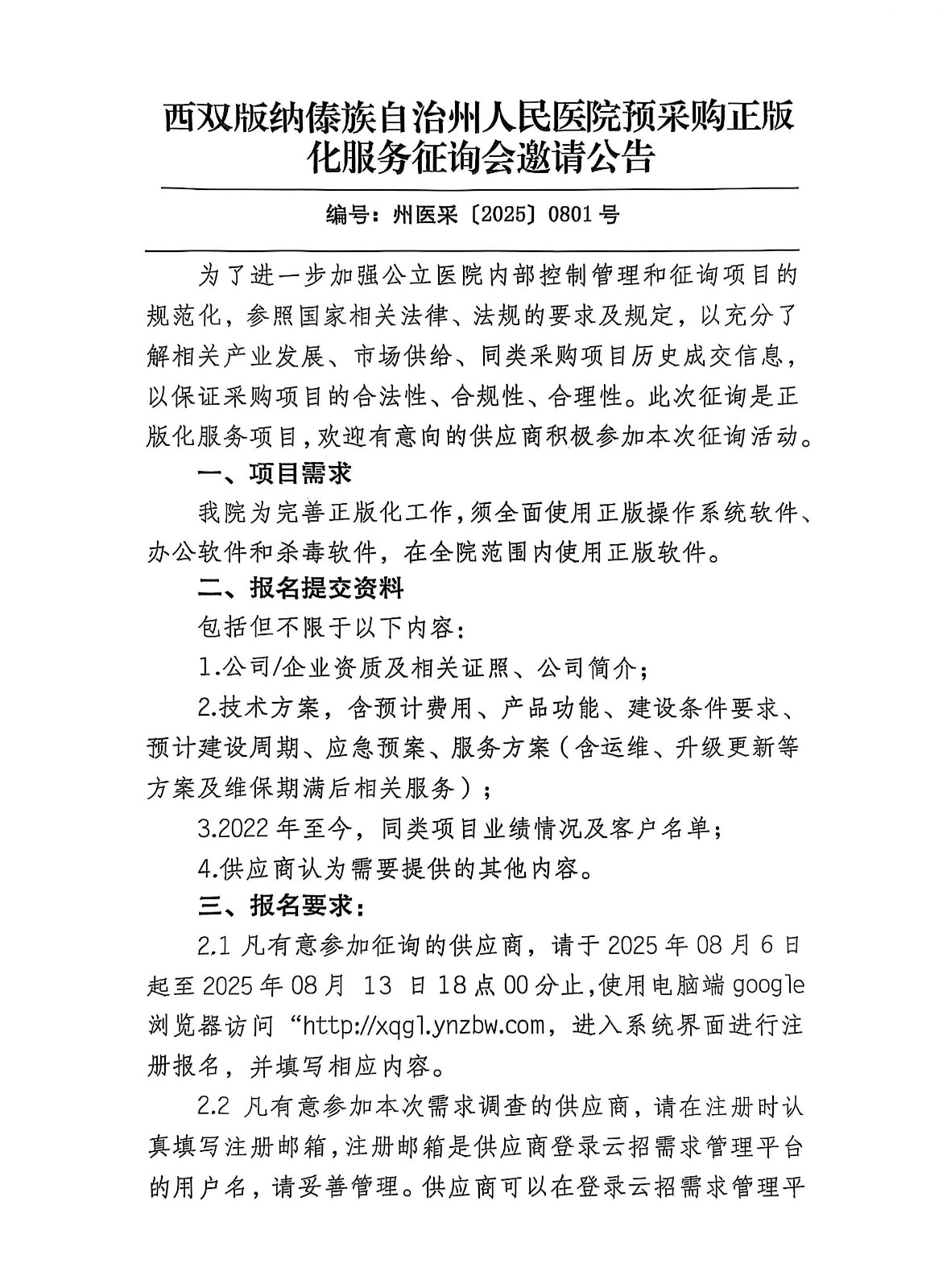 西双版纳傣族自治州人民医院预采购正版化服务征询会邀请公告
