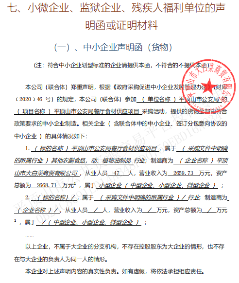 | *、采购内容及范围: 一包:肉类供应、配送、包装、检测、管理、售后服务及其它相关内容; *、资金来源:财政资金; *、交货期:采购人于当日**时前下达次日《食材订单》,中标人应于次日*:**前将食材配送至甲方指定位置,特殊情况以甲方指定时间为准。若甲方有紧急采购需要,中标人应进行应急供货,紧急情况下自提出采购需求起*个小时内完成供货。 *、交货地点:采购人指定地点; *、质量要求:所供货物符合《中华人民共和国食品安全法》及国家、行业内相关标准要求; *、验收标准:满足国家、行业及采购人验收标准。 *、合同履行期限:自合同签订后*年; | |||||||||||||||||||||||||||||||