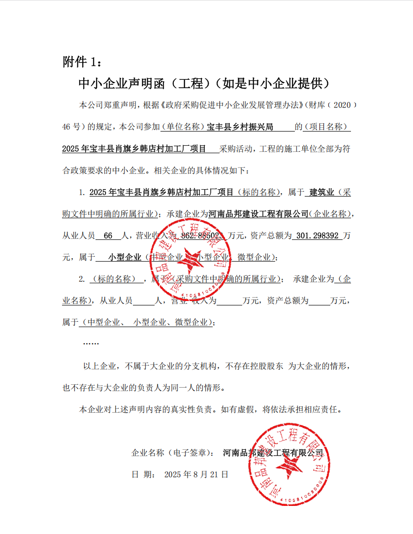 宝丰县乡村振兴局2025年宝丰县肖旗乡韩店村加工厂项目-成交公告