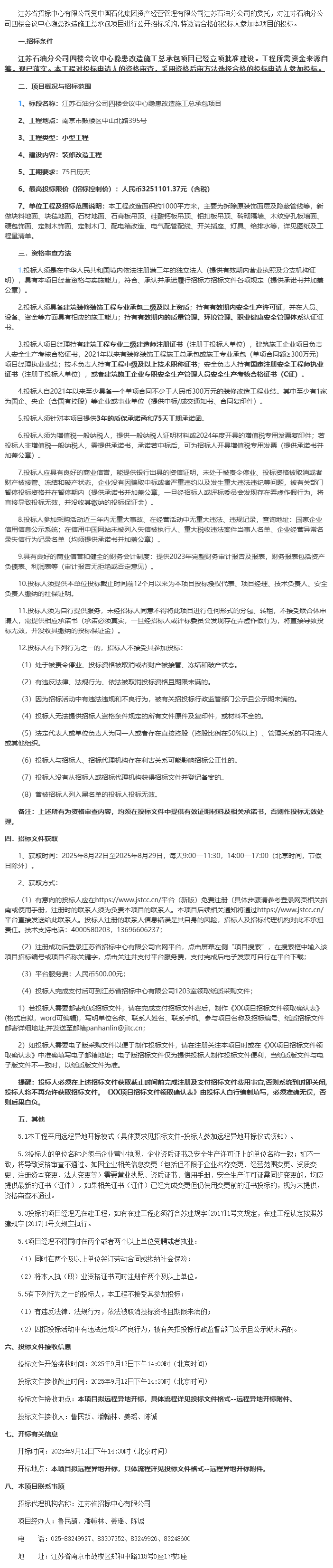 江苏省招标中心有限公司受中国石化集团资产经营管理有限公司江苏石油分公司的委托,对江苏石油分公司四楼会议中心隐患改造施工总承包项目进行公开招标采购,特邀请合格的投标人参加本项目的投标。