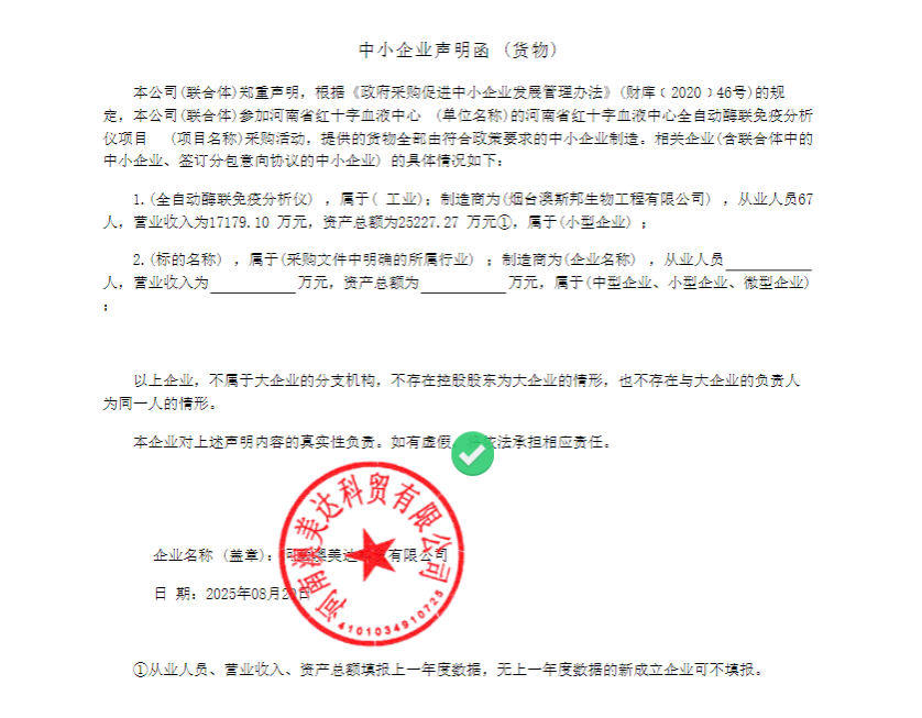 河南省红十字血液中心全自动酶联免疫分析仪项目(二次)*中标公告