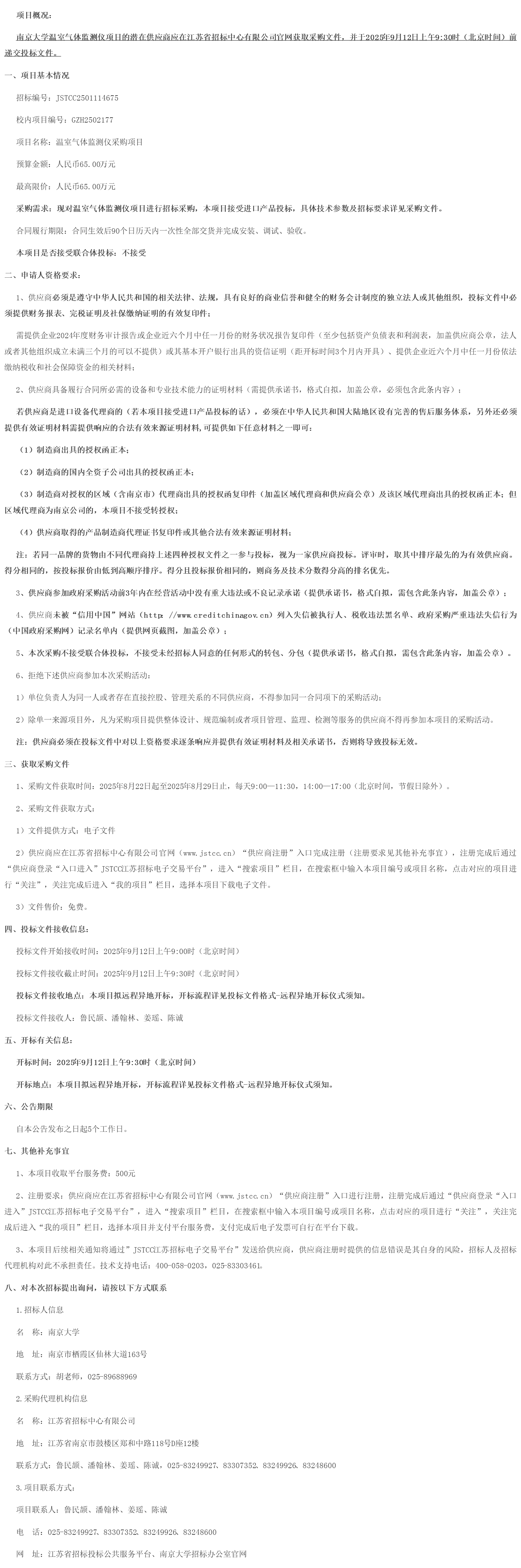 南京大学温室气体监测仪项目的潜在供应商应在江苏省招标中心有限公司官网获取采购文件,并于****年*月**日上午*:**时(北京时间)前递交投标文件。