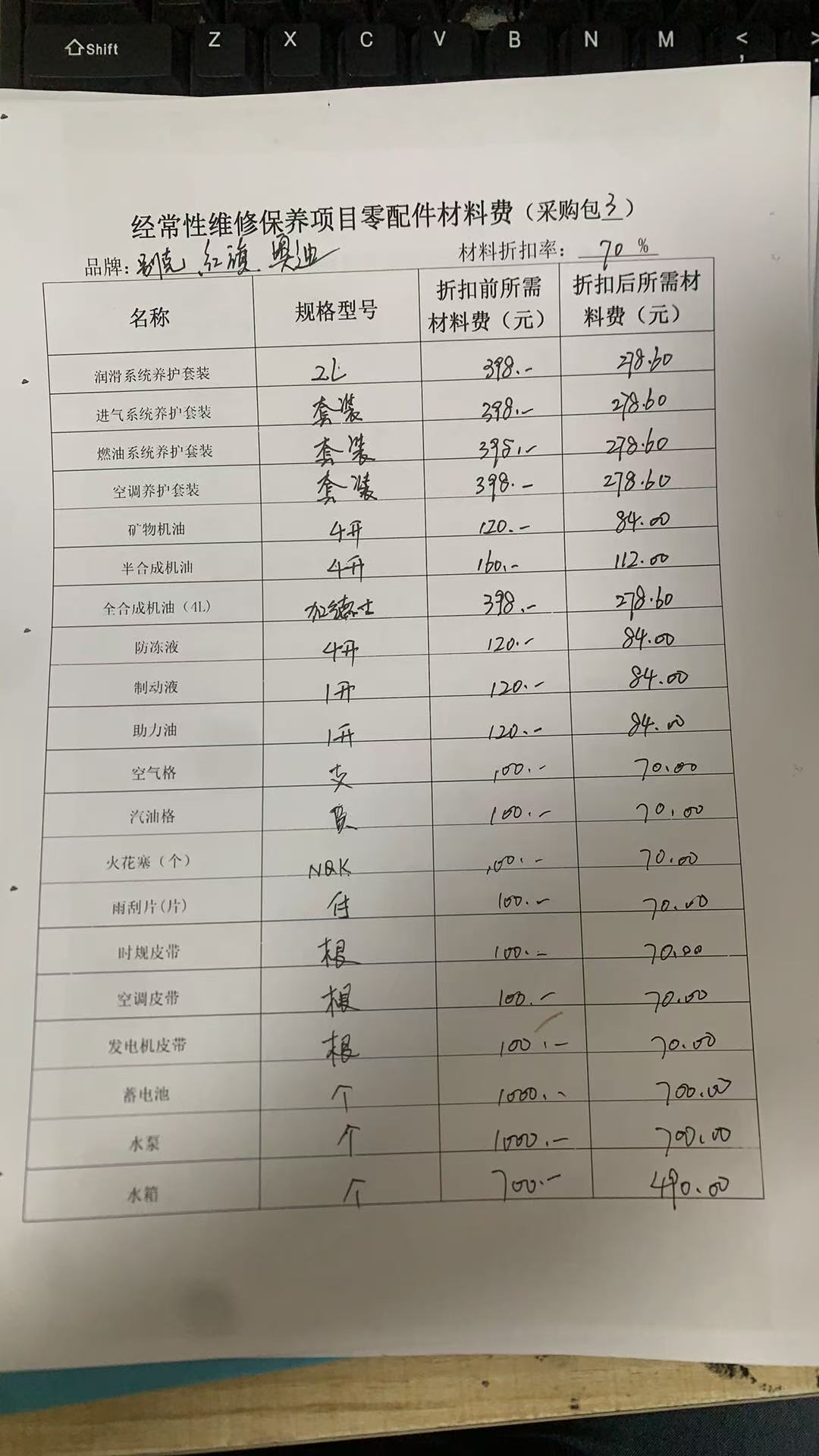经常性维修保养项目零配件材料费:*零配件材料费*.**.***