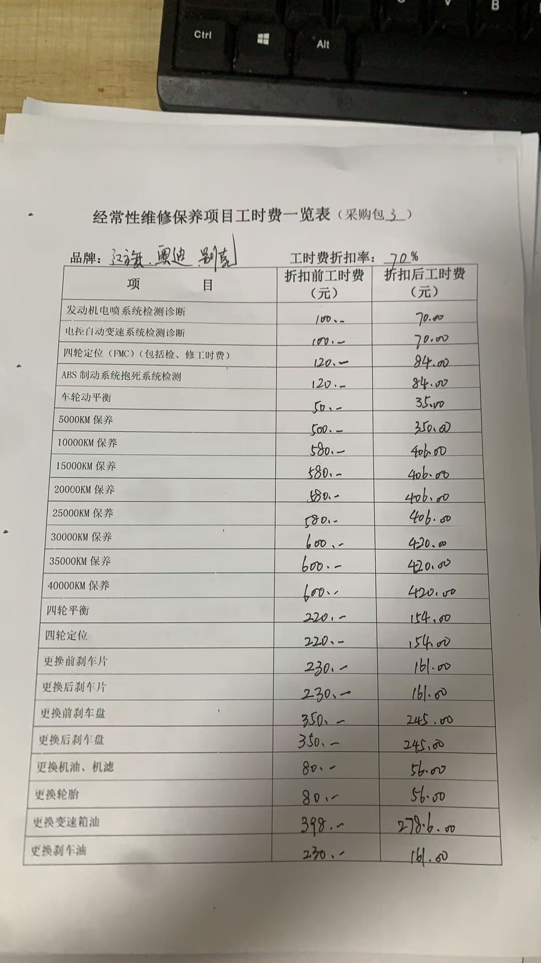 经常性维修保养项目工时费一览表:*工时费*.**.***