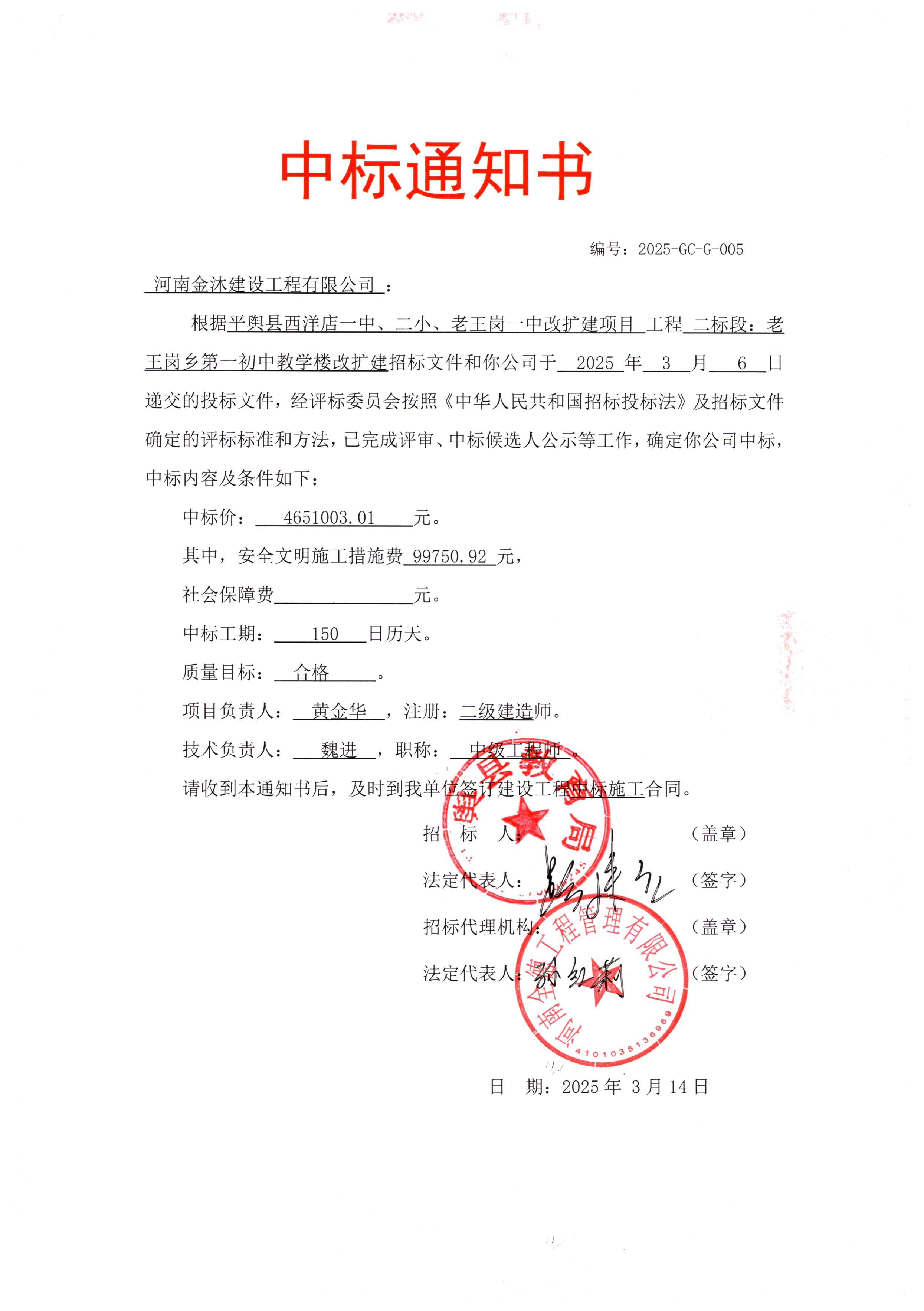 平舆县平舆县西洋店一中、二小、老王岗一中改扩建项目二标段