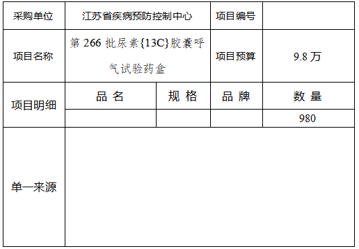 江苏省疾病预防控制中心2025年度采购尿素{13C}胶囊呼气试验药盒需求公告(第266批)