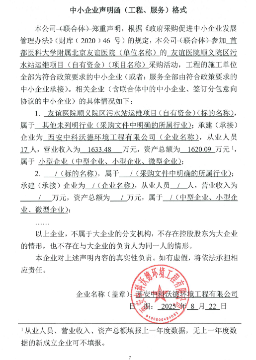 服务范围:为首都医科大学附属北京友谊医院顺义院区内的污水站提供专业运营管理技术服务。