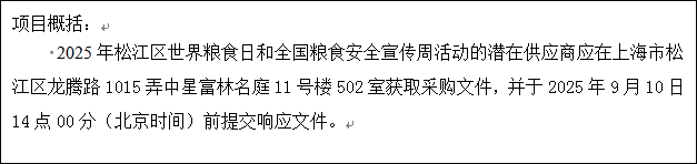 采购需求:****年松江区世界粮食日和全国粮食安全宣传周活动,详见采购文件采购需求。