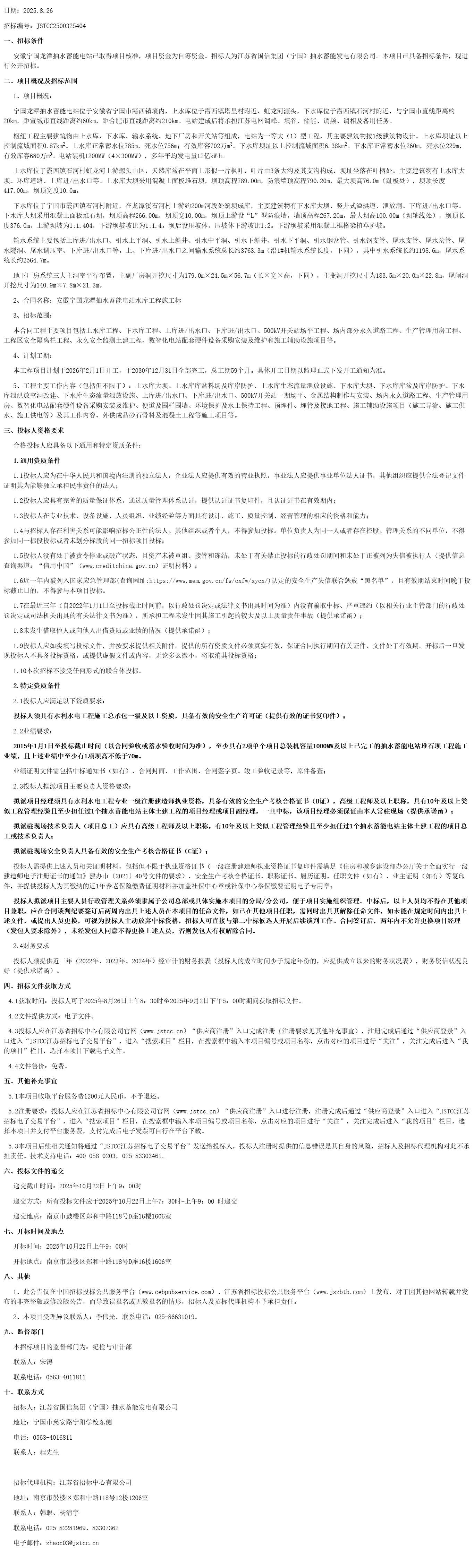 安徽宁国龙潭抽水蓄能电站已取得项目核准,项目资金为自筹资金。招标人为江苏省国信集团(宁国)抽水蓄能发电有限公司。本项目已具备招标条件,现进行公开招标。