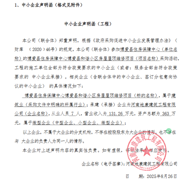 | *、采购项目名称:博爱县住房保障中心博爱县和谐小区房屋屋顶维修项目 | |||||||||||||||||||||||||||||||