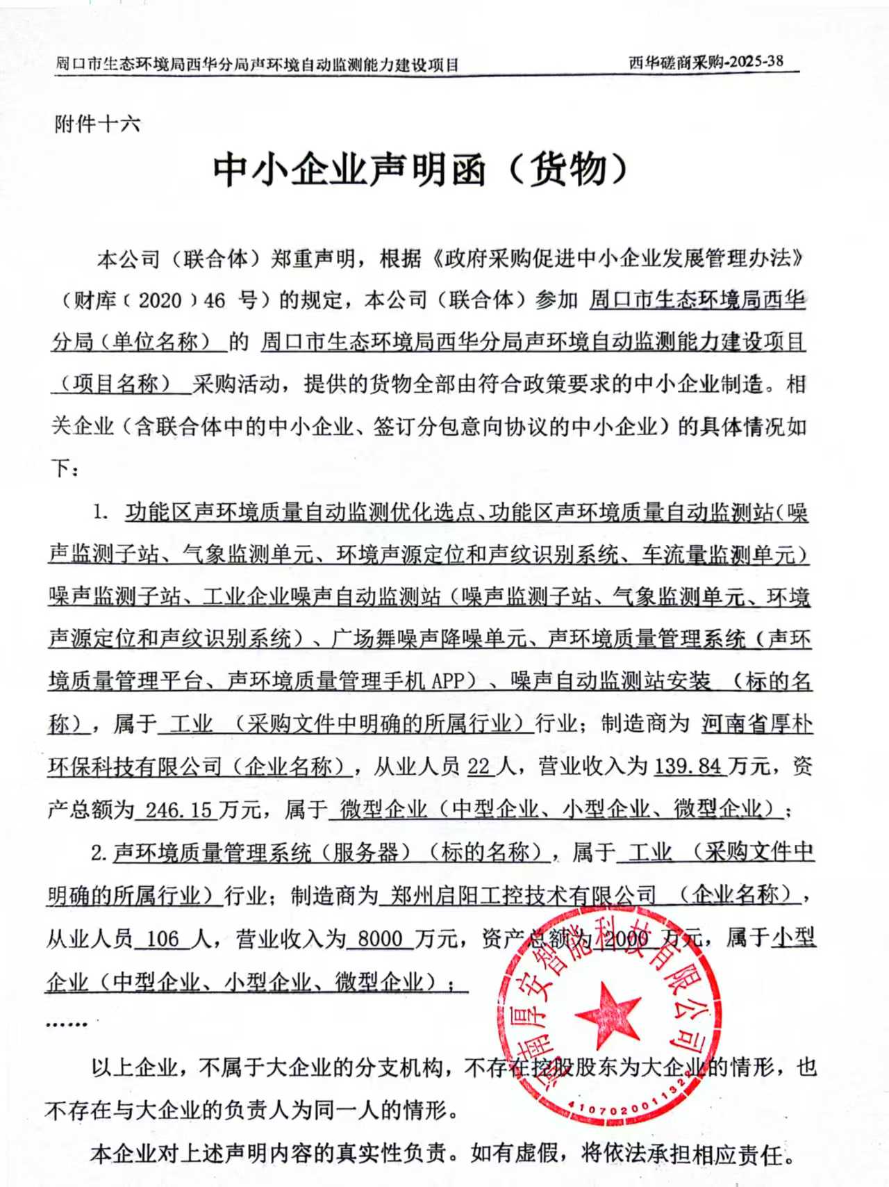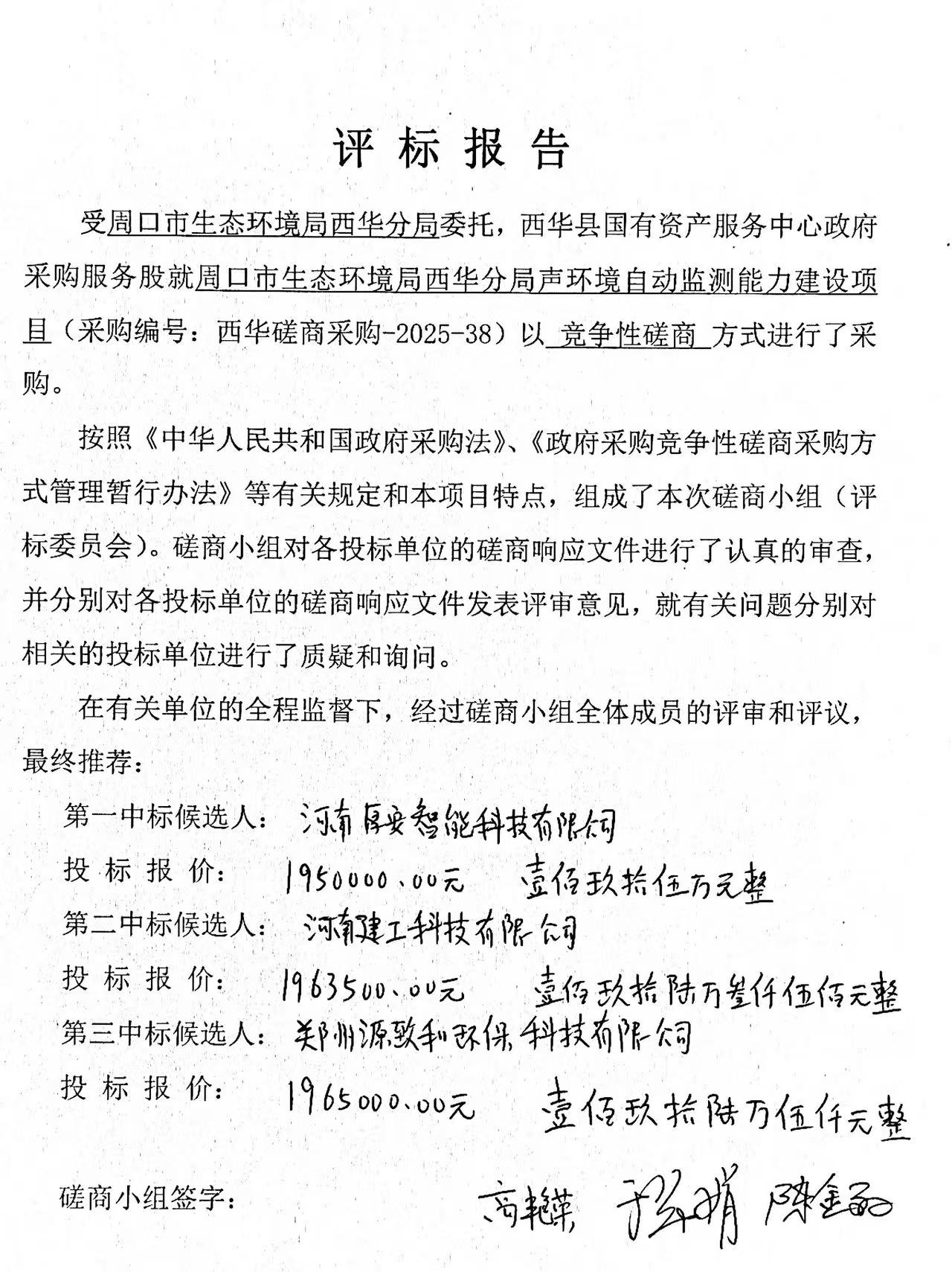 周口市生态环境局西华分局声环境自动监测能力建设项目-成交公告