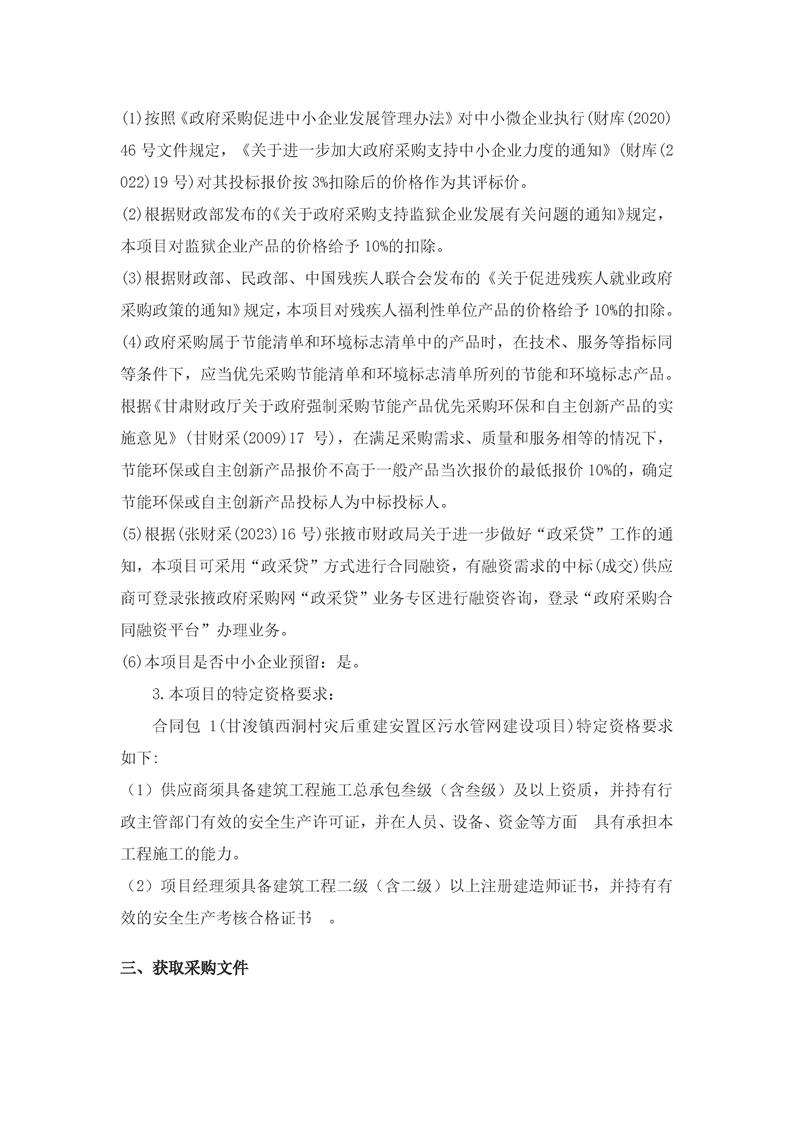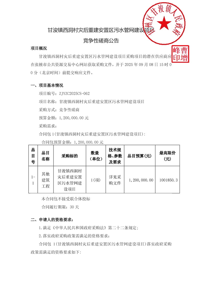 甘浚镇西洞村灾后重建安置区污水管网建设项目采购/资审公告