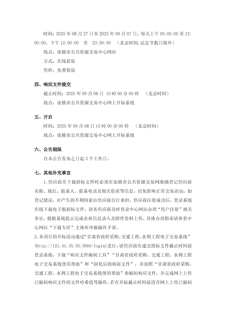 甘肃/张掖 招标采购