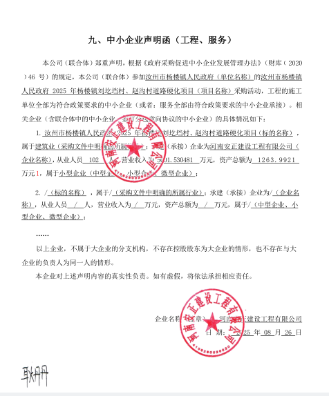 汝州市杨楼镇人民政府2025年杨楼镇刘圪垱村、赵沟村道路硬化项目-成交公告
