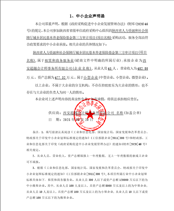 | * | 陕西省人力资源和社会保障厅城乡居民基本养老保险基金第三方审计项目 | * | 无 |