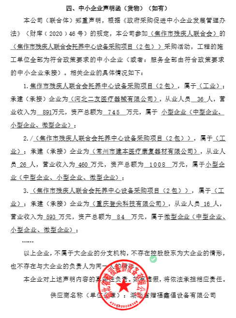 焦作市残疾人联合会托养中心设备采购项目-成交公告