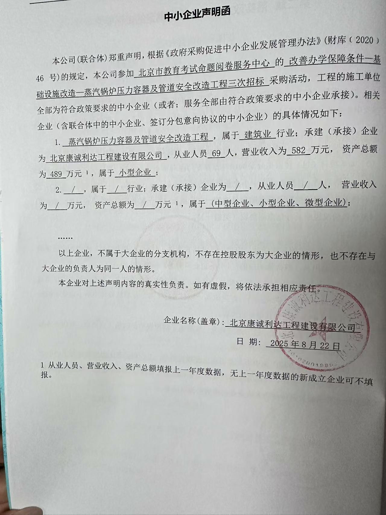 中标成交供应商名称:北京康诚利达工程建设有限公司