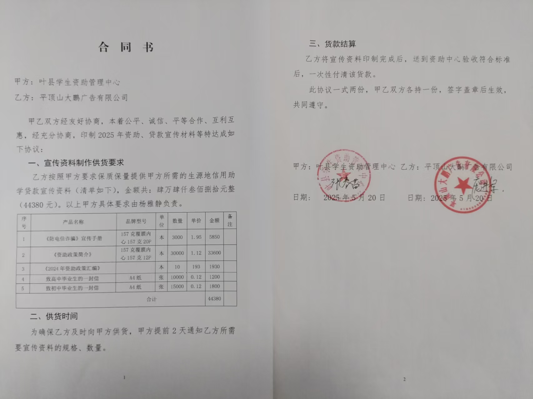 | *.供应商(乙方):平顶山大鹏广告有限公司 | ||||||||||||||||||||||||||||||