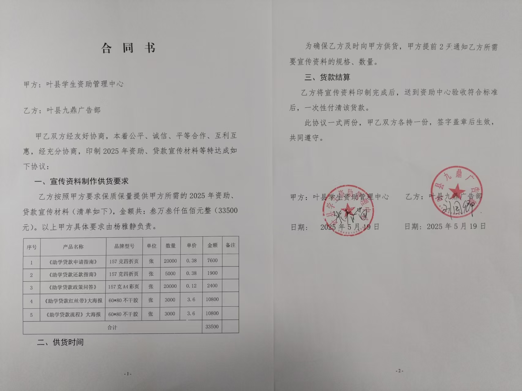 | *.供应商(乙方):叶县九鼎广告部 | ||||||||||||||||||||||||||||||||||||