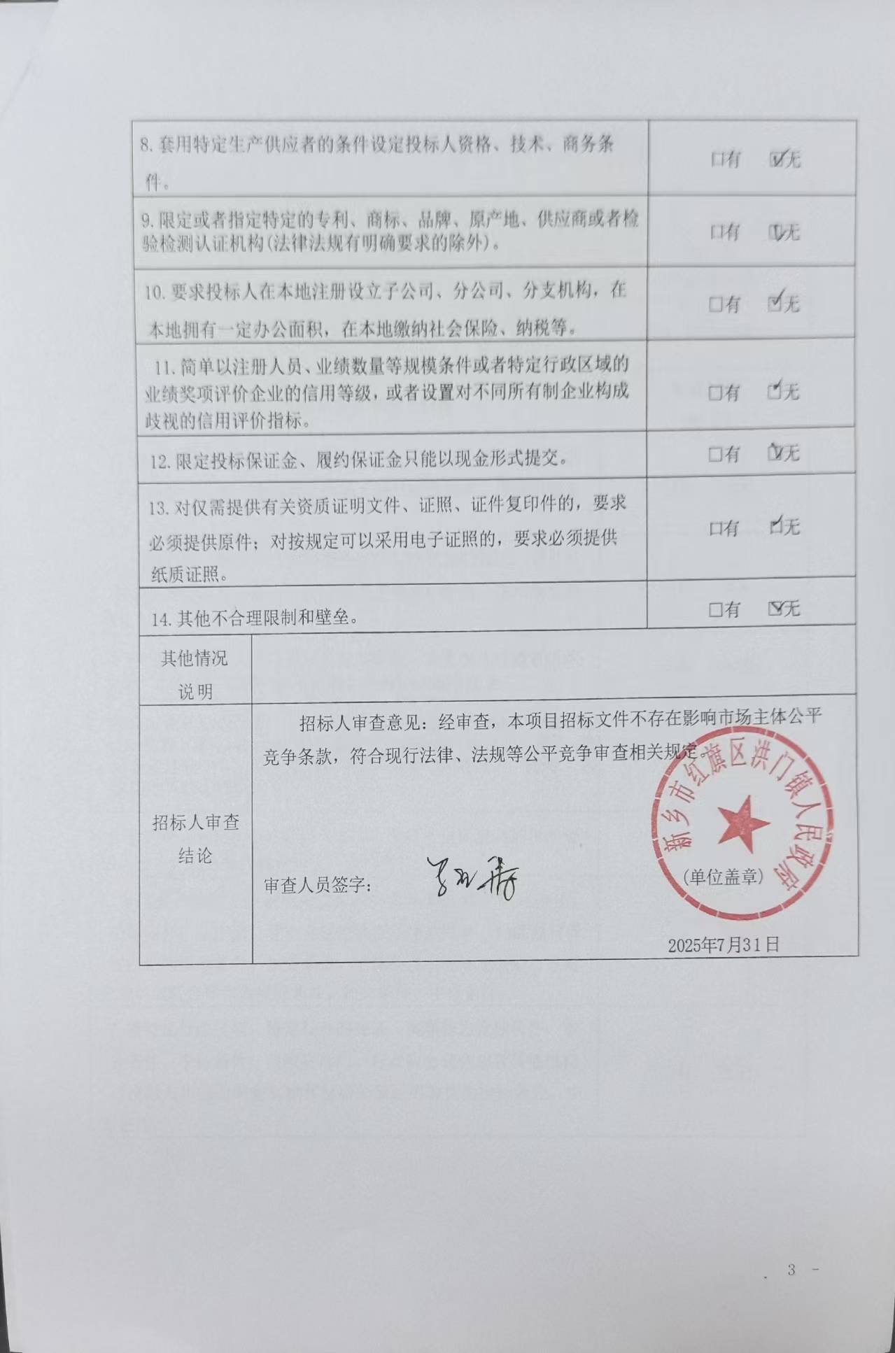招标人:新乡市红旗区洪门镇人民政府