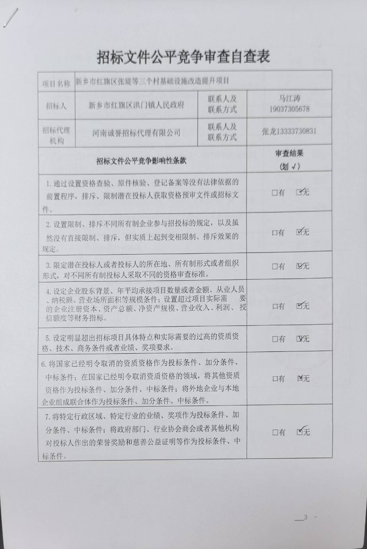 *.*项目名称:新乡市红旗区洪门镇人民政府新乡市红旗区张堤等三个村基础设施改造提升项目