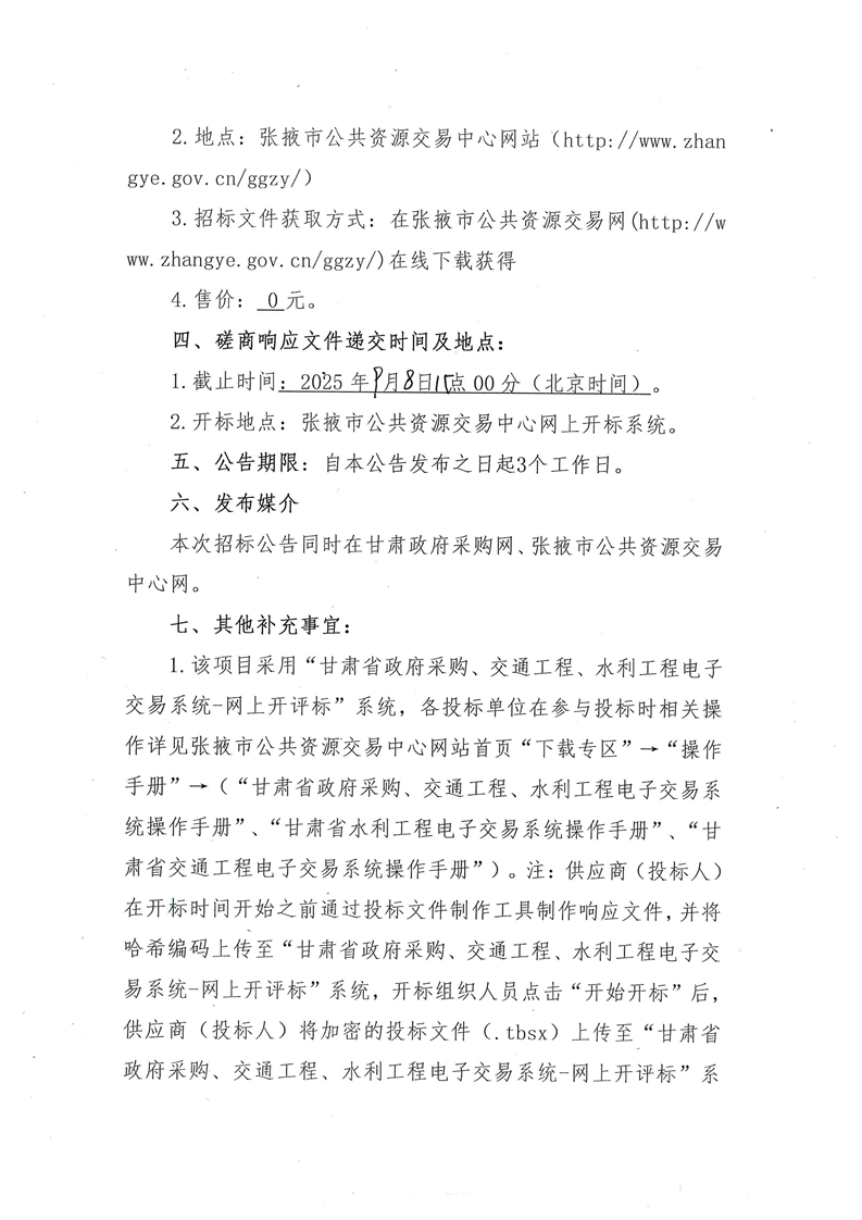 交易平台:张掖市公共资源交易中心招标/采购项目编号:********************投标登记截止时间:********** **:**:**