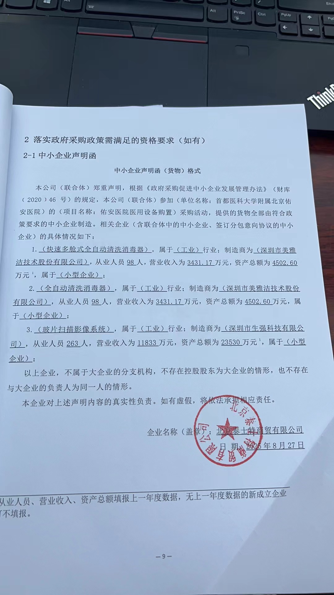 | 北京泰士特商贸有限公司 | 全自动清洗消毒器 | ******* | * | **.*万元 | **.*万元 | 详见招标文件 |