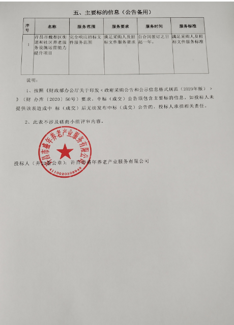 **************号许昌市魏都区民政局“许昌市魏都区街道和社区养老服务设施运营能力提升项目” 成交公告