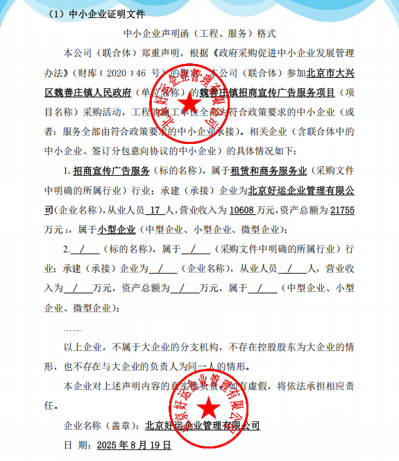 [大兴区]魏善庄镇招商宣传广告服务项目中标公告
