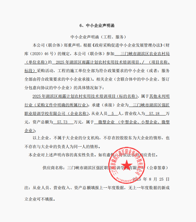 三门峡市湖滨区农业农村局2025年湖滨区雨露计划农村实用技术培训项目-成交公告