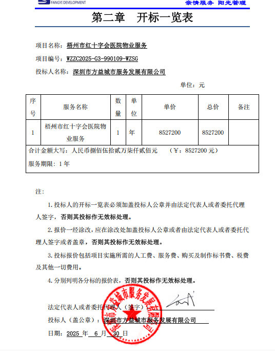 | * | 更正结果公告 | 中标人:广西全俱物业服务有限公司 | 中标人:深圳市方益城市服务发展有限公司 |